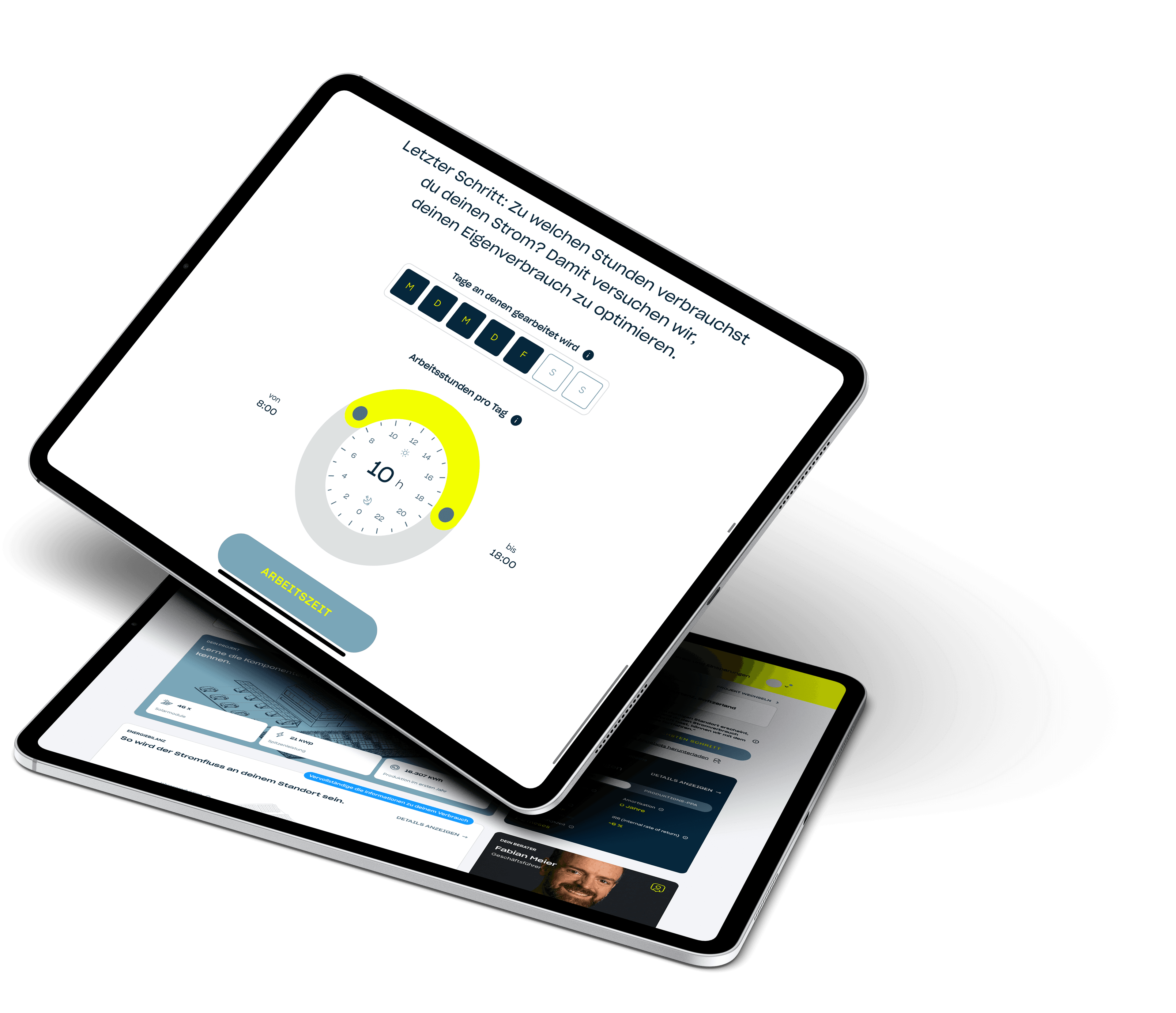 Und mit unserem Solarrechner kannst du das in nur 3 Minuten. Mehr brauchen wir nicht, um deinen Beitrag zur Energiewende zu eruieren. Vom Boden bis zum Dach. Und zum Parkplatz.
