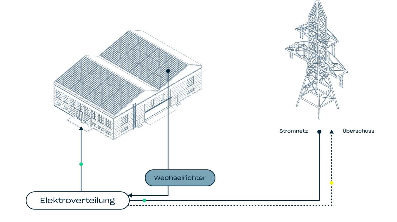 Der Strom welcher nicht selber konsumiert wird, wird ins Netz eingespeist und entsprechend vergütet.